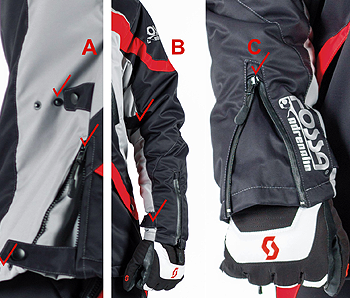 - Боковые расширения боковых швов куртки. предназначены для комфортной посадки человека на технику и сокращения натяжения по нижнему краю изделия, что в свою очередь увеличивает срок службы самого изделия.