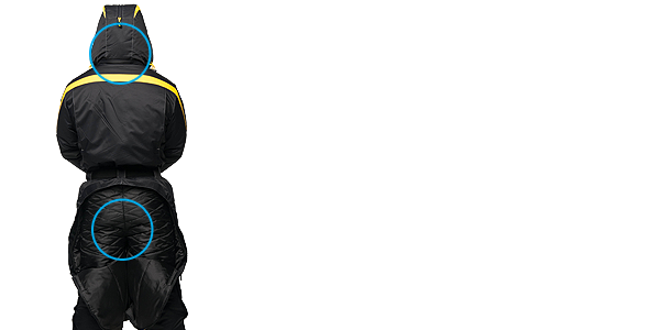 - Комбинезон «Эволюшин» оснащен вентиляцией в районе подмышки и с внешней стороны бедра. Эта опция защитит вас от перегрева, при активных физических нагрузках.