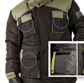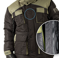 Зимняя куртка представлена в динамичном цветовом сочетании черного с зеленым. А так же динамичный дизайн зимней куртки дополняют внутренние рельефы, которые выгодно подчеркнут анатомические особенности мужской фигуры, скрыв ее недостатки. В качестве дополнительной отделки и защиты в темное время суток, мы использовали светоотражающие элементы. Зимняя универсальная куртка «Сапфир», выполнена из усиленной ткани с горизонтально-ребристой структурой переплетения волокон. А так же внешний материал зимней куртки имеет высокие показатели разрывных нагрузок, водонепроницаемости за счет специальной водоотталкивающей пропитки ( 6 000 мм. H2O ) и отличную морозостойкость материала до -22 градусов. Зимняя универсальная куртка «Сапфир» утеплена высокотехнологичным, гипоалергенным утеплителем.