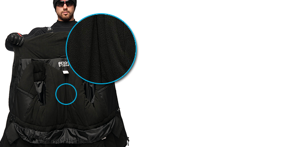 - Дополнительное теплосбережение придаст подкладка, выполненная из теплоемкого «Полар Флиса». Так же внутри изделия предусмотрены два потайных кармана и ветрозащитная юбка.