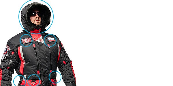 - Так как утепленный костюм «NORTH POLE» предназначен в качестве экипировки для экстремальных климатических условий мы учли всевозможные особенности для данной эксплуатации изделий: увеличенные входы в карманы, эргономику захватов слайдеров молний, клапанов карманов и планки, капюшон, трансформирующийся в объемный теплый воротник. А так же в качестве дополнительной ветрозащиты мы установили дополнительный слой материала, который в свою очередь обеспечит дополнительный комфорт при эксплуатации в экстремальных условиях полярных широт.