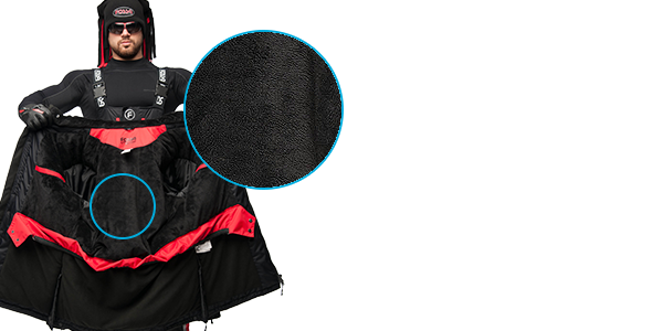 - Дополнительное теплосбережение придаст подкладка, выполненная из теплоемкого «Полар Флиса». Так же внутри изделия предусмотрены два потайных кармана и ветрозащитная юбка.