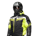 Зимний костюм «Спэйс» состоит из многофункциональной укороченной куртки и полукомбинезона - трансформера. Спортивная экипировка представлена в ярком цветовом сочетании лимонно - желтого, белого и черного. Исключительный динамичный дизайн зимней экипировки подчёркнут анатомией внутренних рельефов, выделяющий брутальность мужской фигуры. В качестве дополнительной отделки, для защиты в темное время суток, мы грамотно расположили светоотражающие элементы. При попадании лучей искусственного света, зимний костюм из мембранной ткани «Спэйс», ярко выделится в темноте и убережет вас от нежелательных казусов экстремального отдыха.