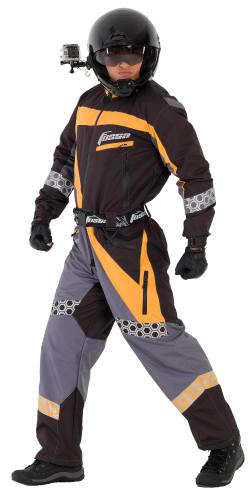 Влагозащитный комбинезон из мембранной ткани выполнен с использованием ассиметричного кроя и имеет предназначение тотальной защиты от столкновений, влаги, грязи и ветра. Данная модель выполнена без капюшона, с воротником стойка для эксплуатации со шлемом, а так же во влагозащитном комбинезоне использовано большое количество СВП элементов для лучшей видимости в темное время суток.