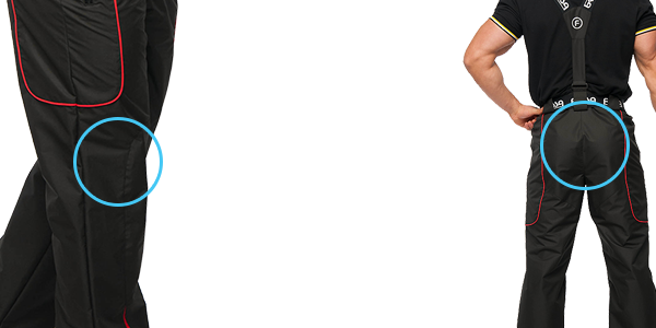 - Дополнительные защитные накладки на коленях и седалище брюк обеспечат максимальную защиту от влаги и истирания.
