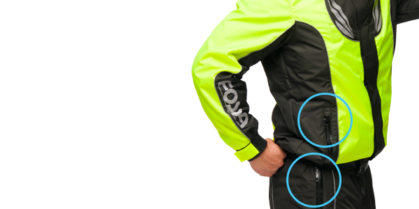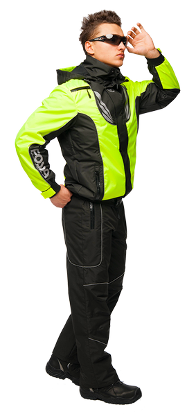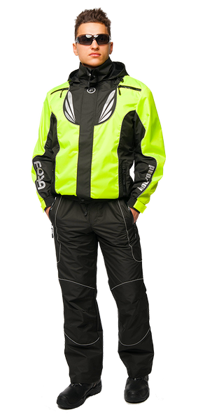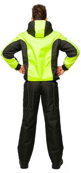 Влагозащитный костюм состоит из многофункциональной, сигнальной куртки и полукомбинезона - трансформера.