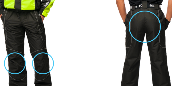 - Дополнительные защитные накладки, на коленях и седалище брюк, обеспечат максимальную защиту от влаги и истирания.