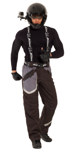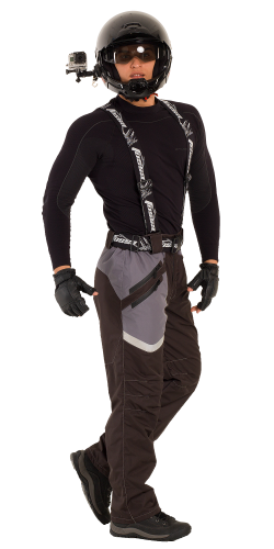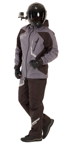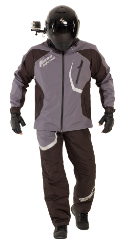 Спортивная экипировка представлена в монохромном цветовом сочетании серого и черного. Исключительно динамичный дизайн летнего водо –грязе – ветрозащитного костюма подчеркнёт анатомия внутренних рельефов, выделив атлетизм мужской фигуры.