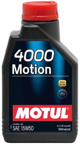Замена производится в соответствии с рекомендациями производителядвигателя и по собственному усмотрению. 4000 Motion 15W-50 можетсмешиваться с синтетическими и минеральными маслами.