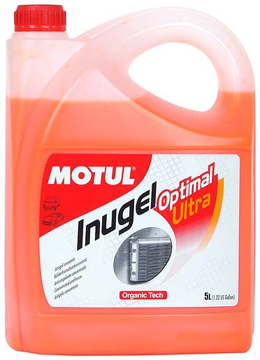 MOTUL Inugel Optimal Ultra &mdash- высококачественная охлаждающая жидкость,концентрат. Требует разбавления дистиллированной водой. Создана наоснове моноэтиленгликоля с использованием специфических органическихантикоррозионных присадок (АОТ). Специально рекомендована дляохлаждающих систем легковых и грузовых автомобилей, тяжелой техники,тракторов, агротехники, судов и лодок, стационарных двигателей и т.д.